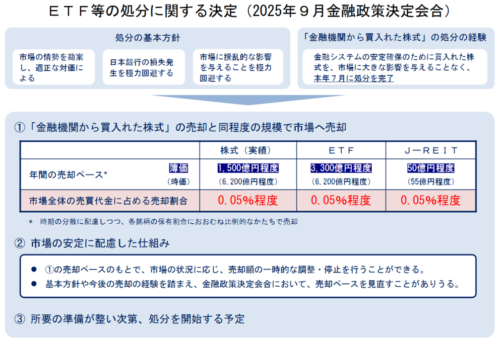 株価が低迷し続けていた数年前まで、日銀が企業の株価を買い支えるべくETFを適宜購入していたのは周知の事実です。安い時に買って、この高値圏で売り抜ければ日銀は相当のやり手投資家ということになりますね!(゚∀゚;)。上述の金額も「簿価」であって、「時価」は倍の6,200億円にもなってるようですね。年間6,200億円は国庫に還ってくるという施策になるんでしょうか? まあ売却ペースはマーケットの情勢次第でしょうから安定するとは限りません。恒久財源とも言い難いですが…ここ最近生じている財政的問題の解決に幾ばくかを充てていく、でもいいような気がしますけどね…当て込み過ぎるとマーケットに悪影響しか出ませんし、買うより売るのが難しいのは個人も国も変わらない感じか(´・ω・`)。