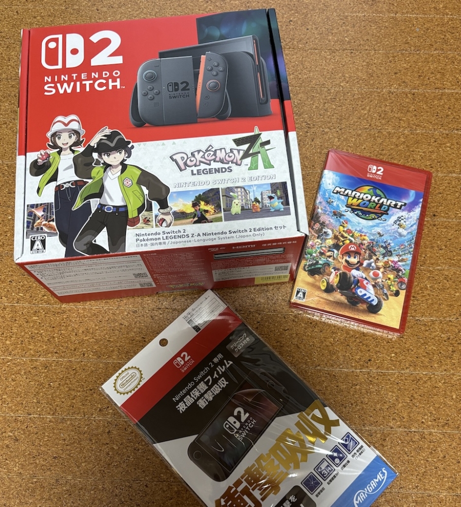 そんな中、昨日購入できていたSwitch2が届きました。先月頭にたまたま予約購入できたポケモン&マリカーセット。あまりの早押し合戦で「ほんとに予約できてるのか?」が半信半疑でしたが、ちゃんと届きました。他に準備していた抽選系は軒並み連絡が来なかったことを思うと、早押し合戦で購入機会を小刻みに提供してくれた「楽天ブックス」には感謝します。リアルラックが伴わない人間はこうでもしないと転売ヤーから買うしか手がなくなるんですよ(´・ω・`)。