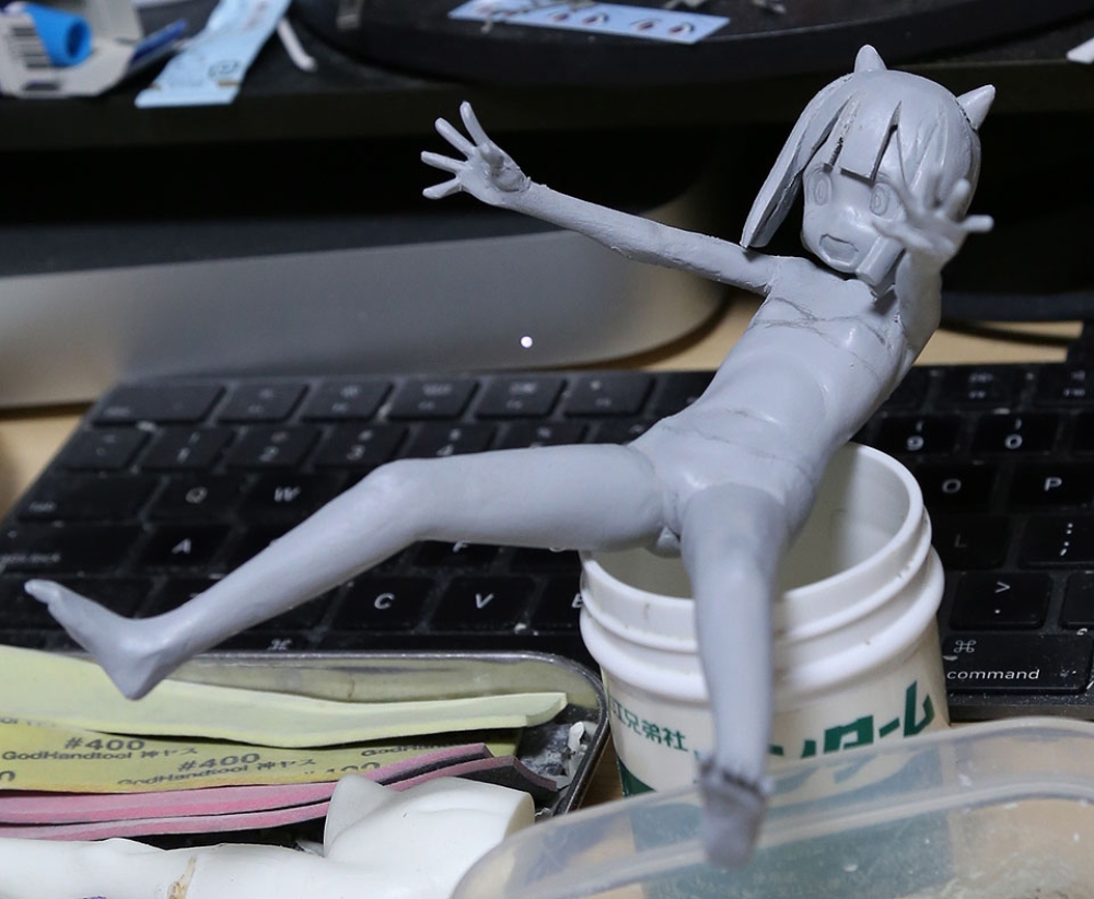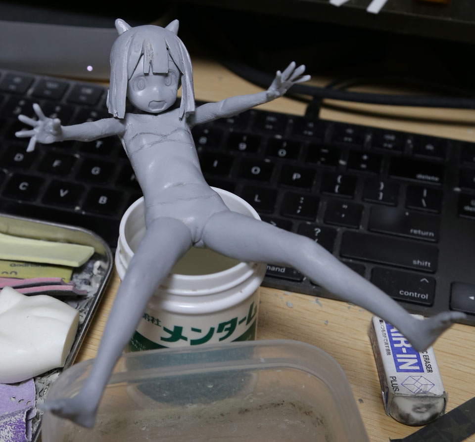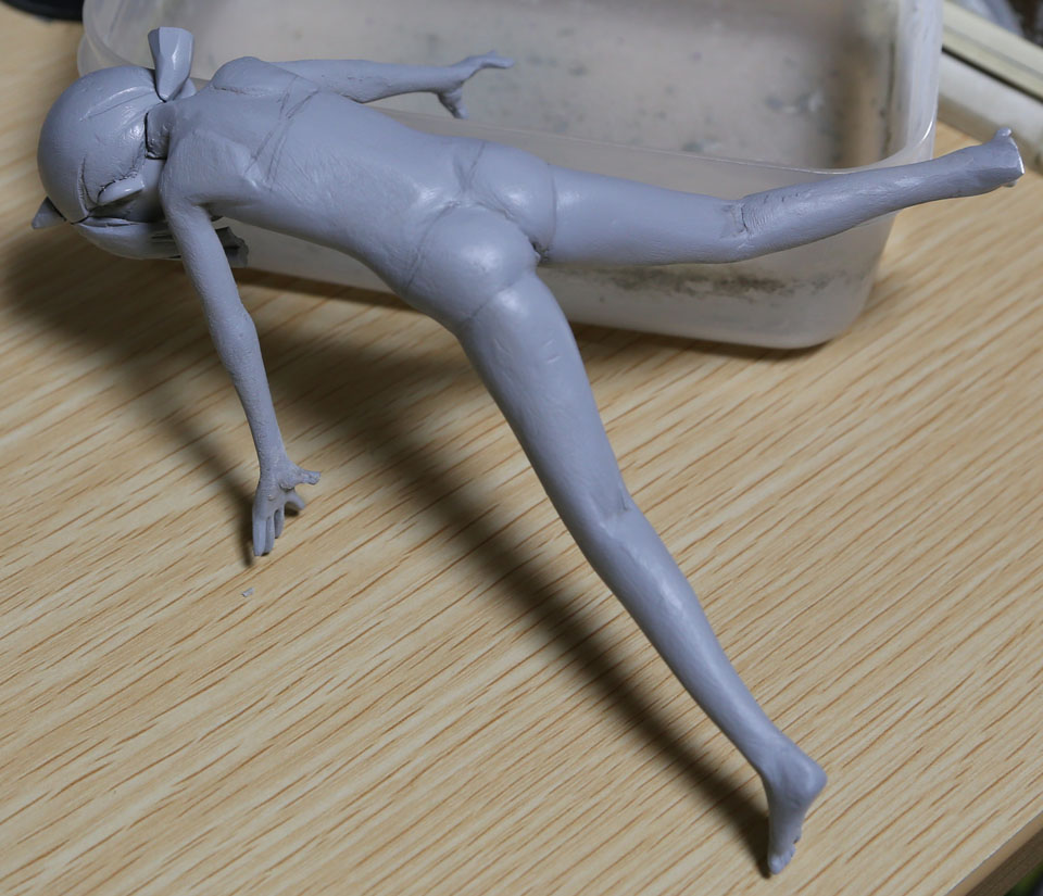 全体として薄い・平たい(? ので関節や骨、なだらかなおなかの隆起とかを丁寧に作り込んであげたい。そう思いながら盛ったり削ったり磨いたりをしてきました。