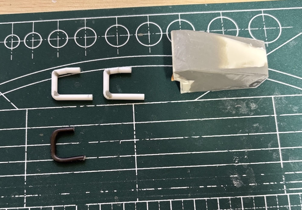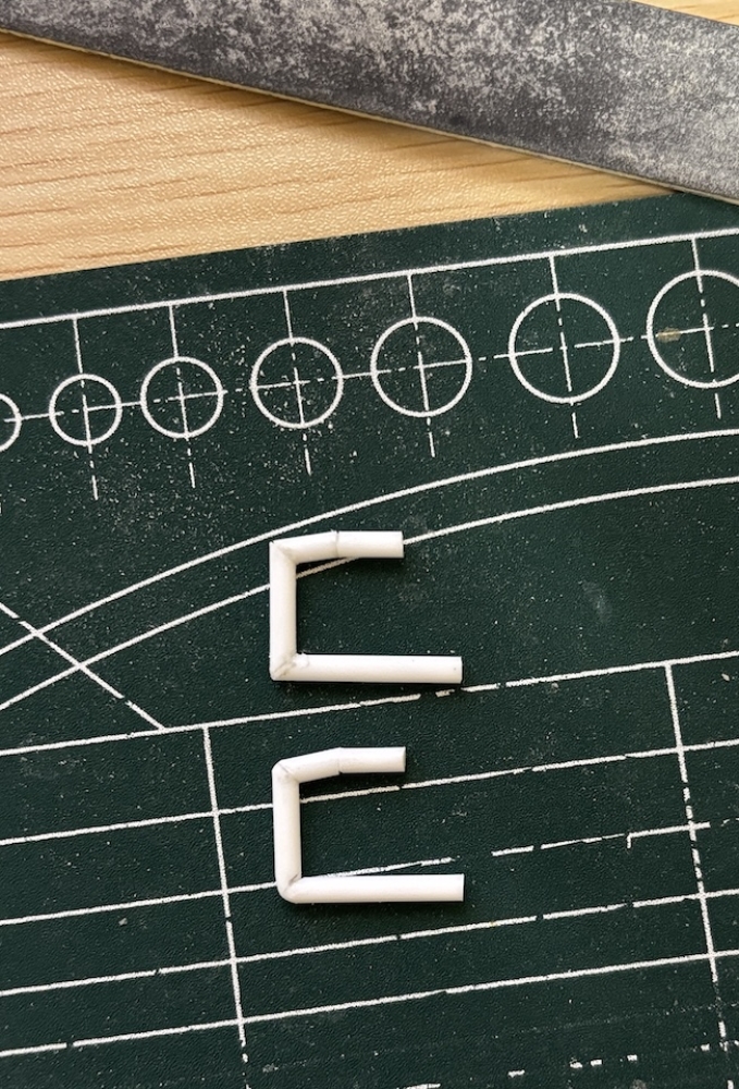 ライジングトータスのカメラガードは当初は2.4mm径のアルミ線を曲げて作っていたんですが…狙った角度で曲げられる道具を持ち合わせてません。なので、プラ棒で作り直しました。